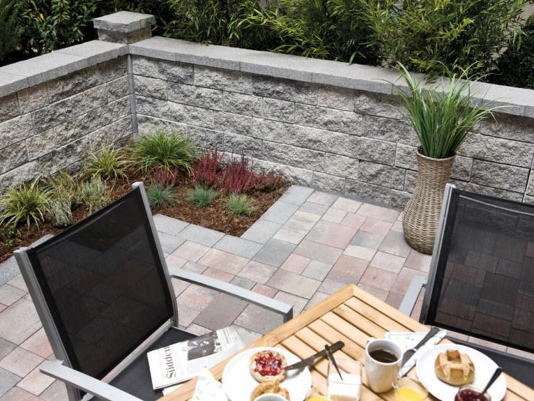 Mit dem Bossamino-Mauersystem lassen sich Wände und Mauern ab einer Länge von 1,575 m* in jedem 7,5 cm-Raster bauen. Die drei Steinformate werden im festen Mengenverhältnis 1:1:1 geliefert. Der Bedarf ermittelt sich aus der gewünschten Mauerlänge und -höhe. Bossamino-Mauern können mit Abdeckung gestaltet werden, alternativ lässt sich die obere Mauerzeile bepflanzen. *Prinzipiell sind auch kleinere Mauerlängen möglich. In Einzelfällen muss hier ggf. geschnitten werden.