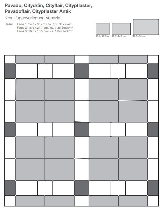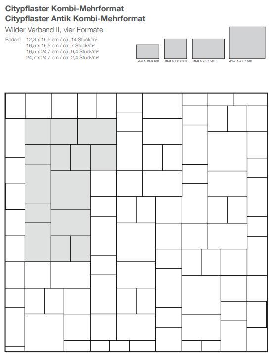 Die sehr modern und edel anmutende Optik erhält das Cityflair -XXL Pflaster durch die vier Steinformate, die in Kombination miteinander eine Vielzahl von Verlegevarianten offenbaren.