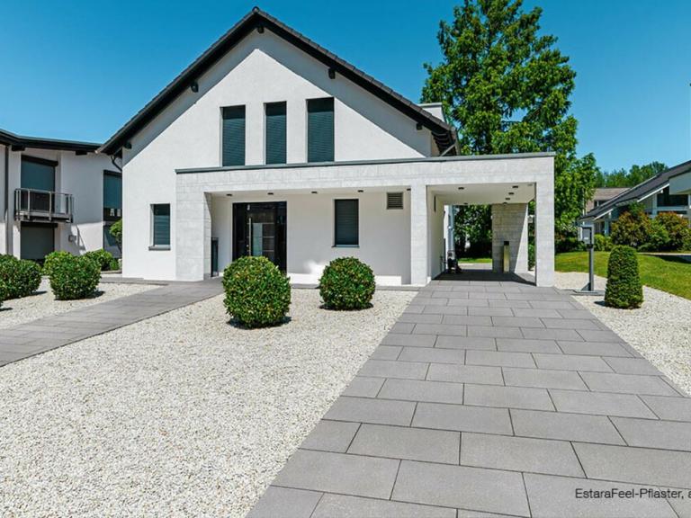 Mit der feingebürsteten Oberfläche fühlt sich dieser Pflasterstein wie Samt an, für ein angenehmes Auftrittsgefühl. Dabei spielt der hochwertige Glimmereffekt mit der Sonne und lässt die gesamte Fläche erstrahlen. Dank werkseitigem Tiefenschutz reduziert sich die Schmutzaufnahme merklich. Besonders geeignet ist dieses hochwertige Pflaster für Einfahrten. Die Doppelnocken als Verschiebesicherung machen die Fläche besonders stabil befahrbar.