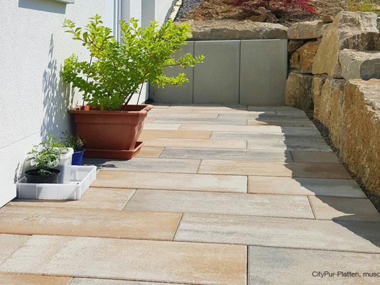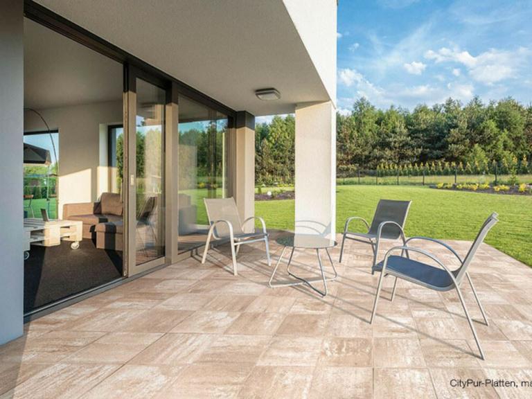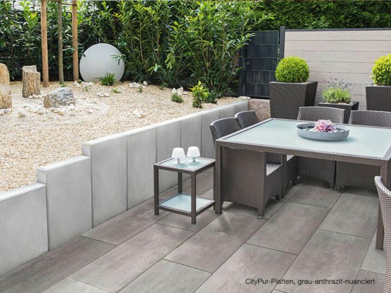 Die neue CityPur-Platte überzeugt mit ihrer modernen Form und den aufregenden Farbtönen für eine kreative Terrassengestaltung. Damit ist sie die stilsichere Ergänzung zu unseren CityPur-Pflastern, - Palisaden und -Stufen. Dank der besonderen Verarbeitung ist die Oberfläche betonglatt und gleichzeitig rutschhemmend.
