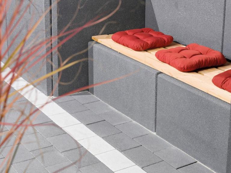Oberfläche: Natursteinkörnung, rundum gestrahlt, werkseitig imprägniert